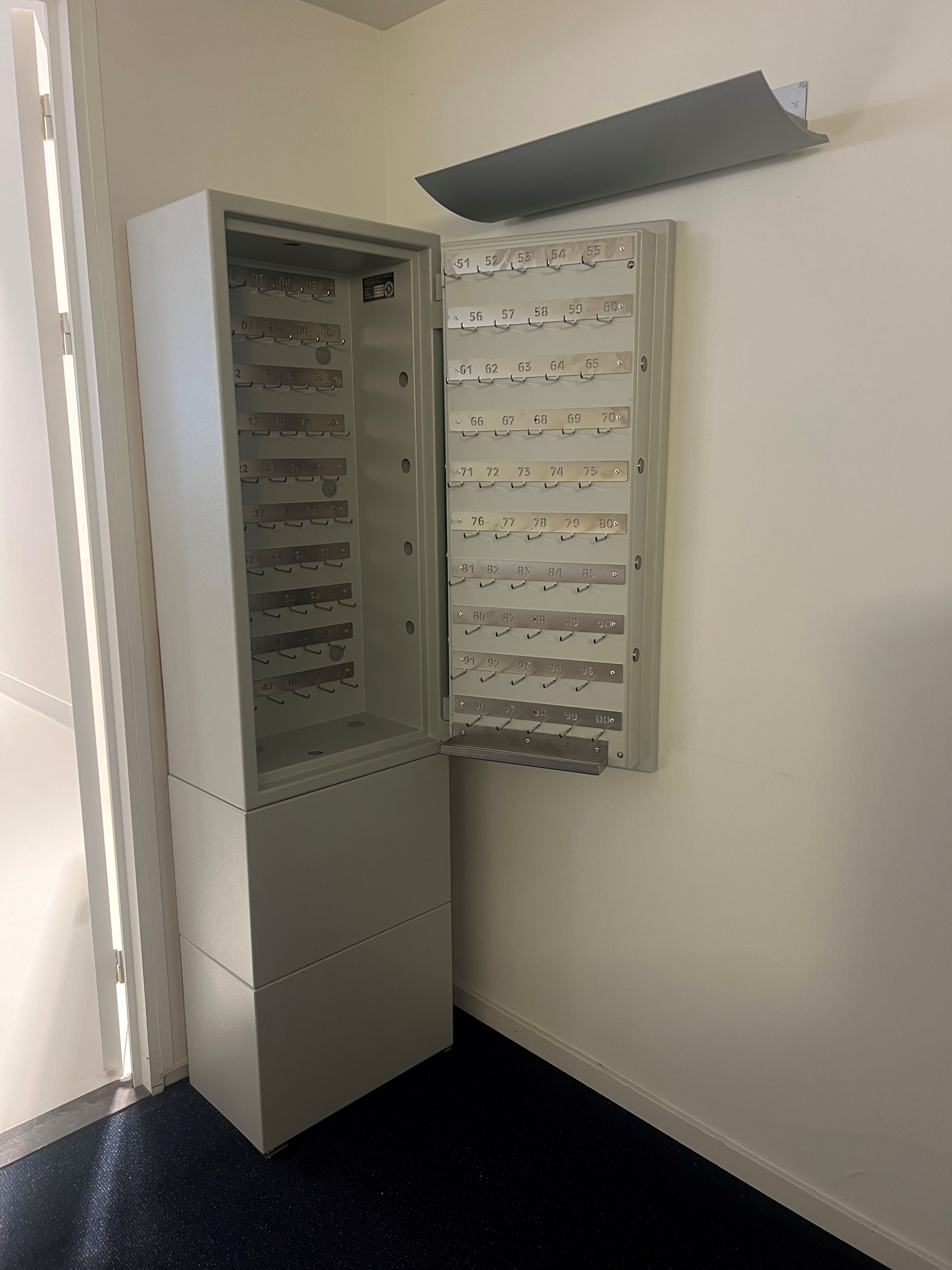 Zeer robuuste sleutelkluis met dubbelbaard sleutelslot en 100 genummerde haken, serie 01 t/m 00