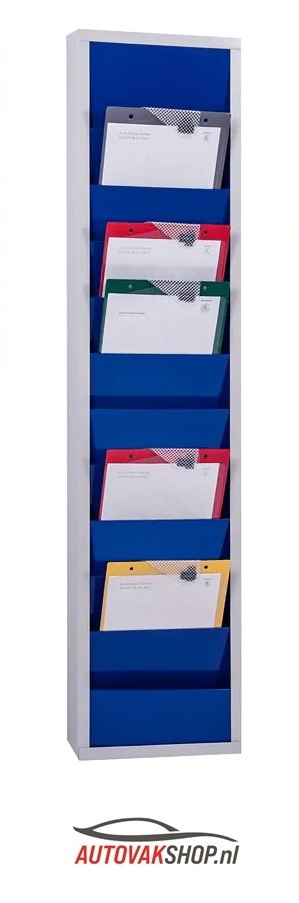 Dit robuuste planbord is dé oplossing voor een georganiseerde werkplaats en receptie. Met 1 rij en 10 sleuven biedt het ruimte voor 10 DIN A4 werkorders of foedralen. Het moderne, gepoedercoate oppervlak is vuilwerend en leverbaar in blauw (en ook in andere kleuren zonder meerprijs).