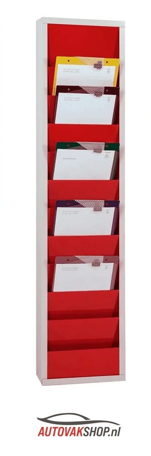 Dit robuuste planbord is dé oplossing voor een georganiseerde werkplaats en receptie. Met 1 rij en 10 sleuven biedt het ruimte voor 10 DIN A4 werkorders of foedralen. Het moderne, gepoedercoate oppervlak is vuilwerend en leverbaar in rood (en ook in andere kleuren zonder meerprijs).