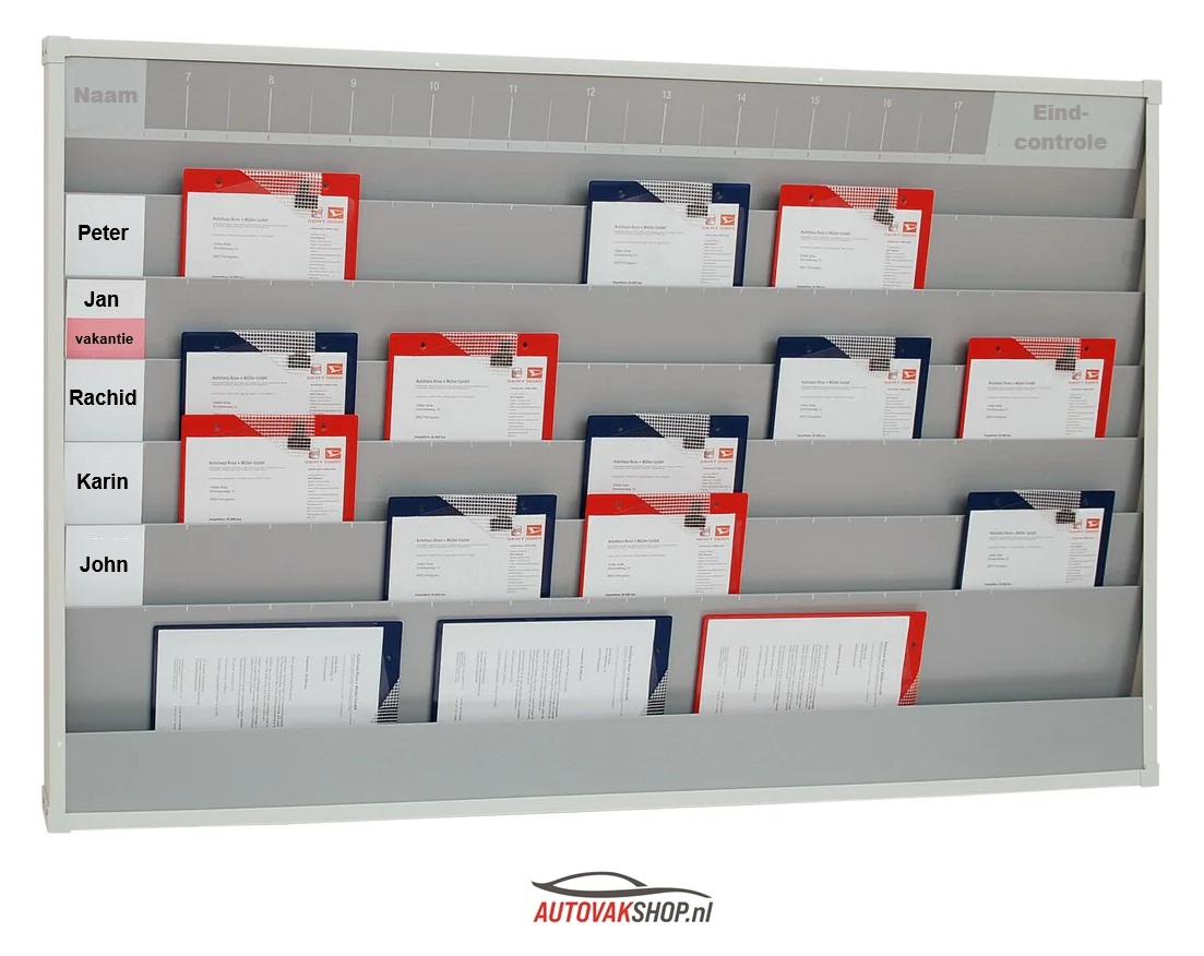 Het houdt DIN A4 werkorders en foedralen overzichtelijk bij elkaar, zodat alle documenten direct beschikbaar zijn.