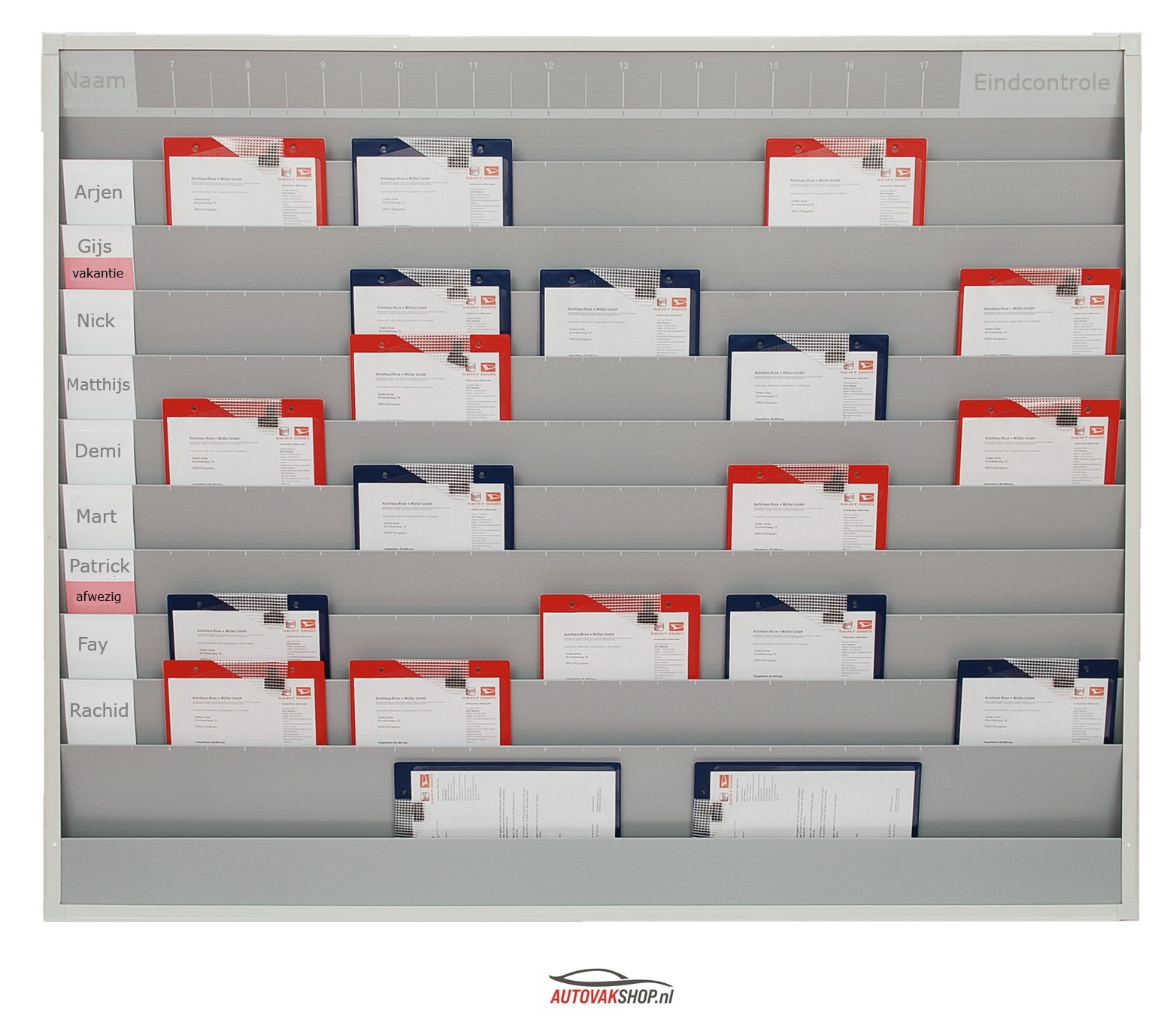 Het houdt DIN A4 werkorders en foedralen overzichtelijk bij elkaar, zodat alle documenten direct beschikbaar zijn.